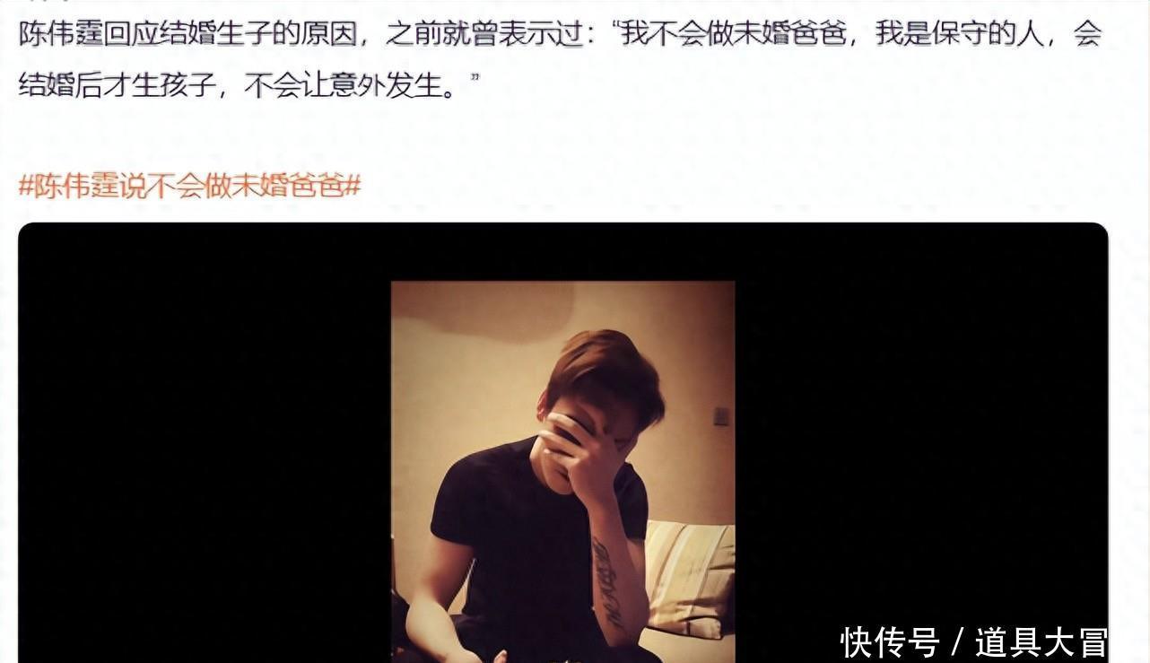 有网友表示:第一次看见这哥我还以为是花花公子,后面发现他对待感情很认真的。“我不会做未婚爸爸,我是保守的人,会结婚后才生孩子,不会让意外发生。” 这段话说得很负责,官宣也是剧播完才说的。祝幸福呀。还有网友说:“陈伟霆早年就说过‘感情无需向世界证明’,人家已经完成法定登记,只是没办仪式没官宣而已”。
